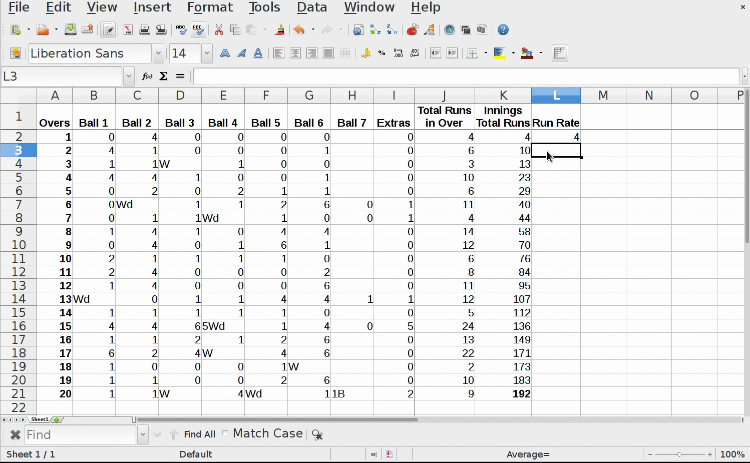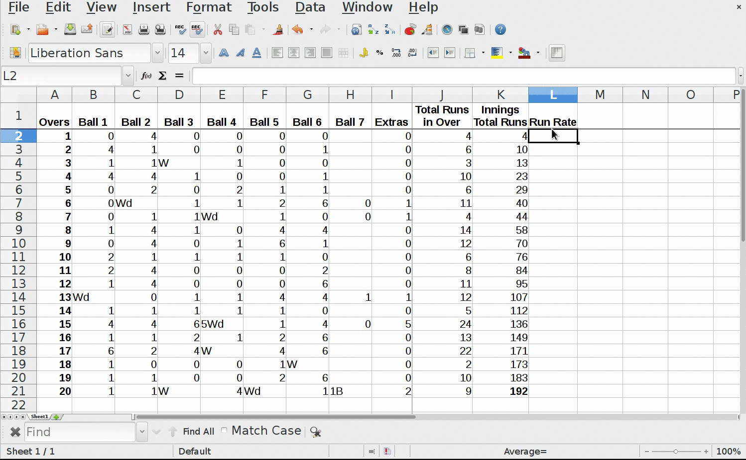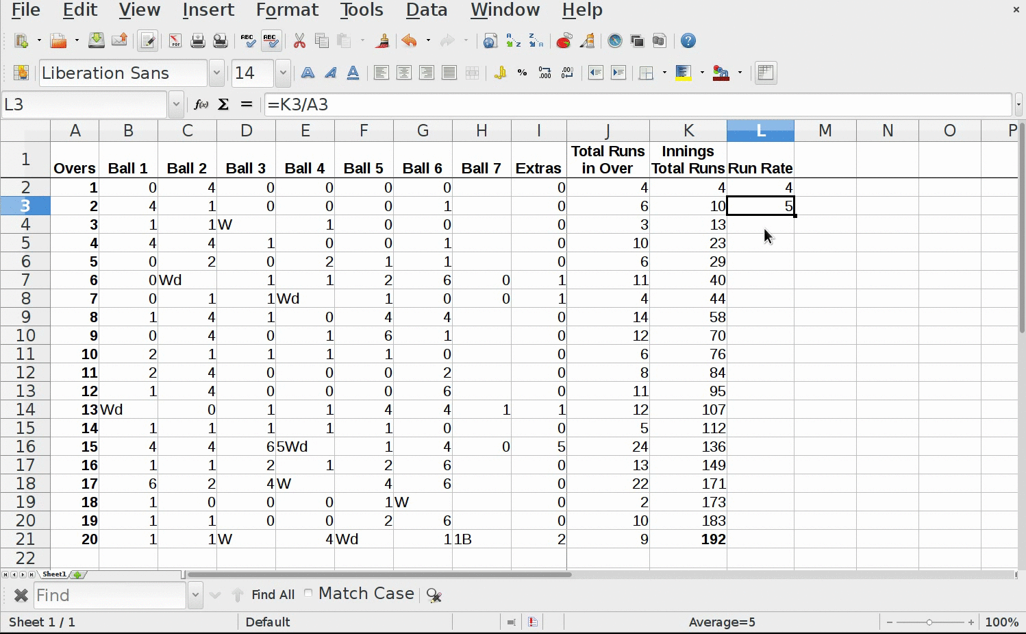 - Now drag the tiny rectangle of selected cell to reflect formula output for remaining overs.