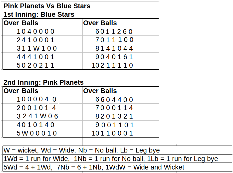 ఈ టీ 10 కామెంటరీ డేటా లో మనం ప్రతి బాల్ కి ఎదురుగా ఆ ఓవర్ లో ఎన్ని పరుగులు తీశారో పెట్టచ్చు