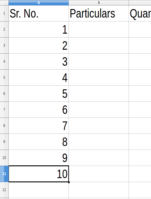 ఇవ్వబడిన శాంపిల్ బిల్లులో మనకు 10 ఐటమ్స్ ఉన్నాయి కాబట్టి, మనం సీరియల్ నంబర్లను 1 నుంచి 10 చేర్చాలి.