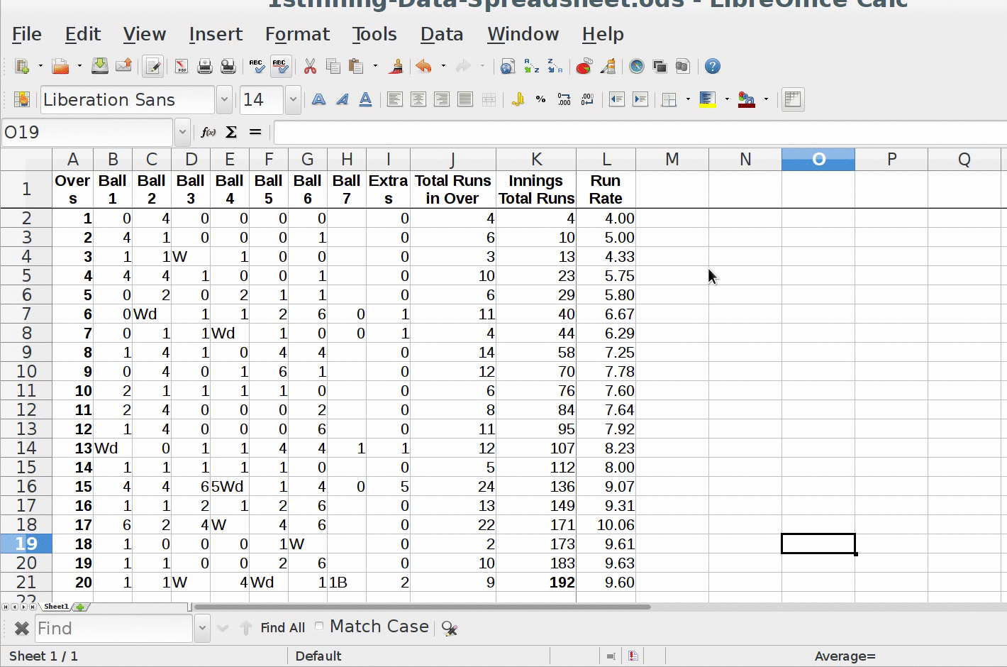 ఒక్కొక్క ఓవర్ కి మొత్తం పరుగులకు కాలమ్ చార్టు తయారుచేయట: