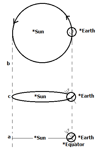 Unit 1: The Earth > File > sun-earth system > sun-earth system: View in Full Screen The Sun-Earth system from three different perspectives (a: as seen from within ecliptic, b: as seen from above North Pole, c: oblique view) Download × Tags No tags defined yet! Views Show no. of views Programs