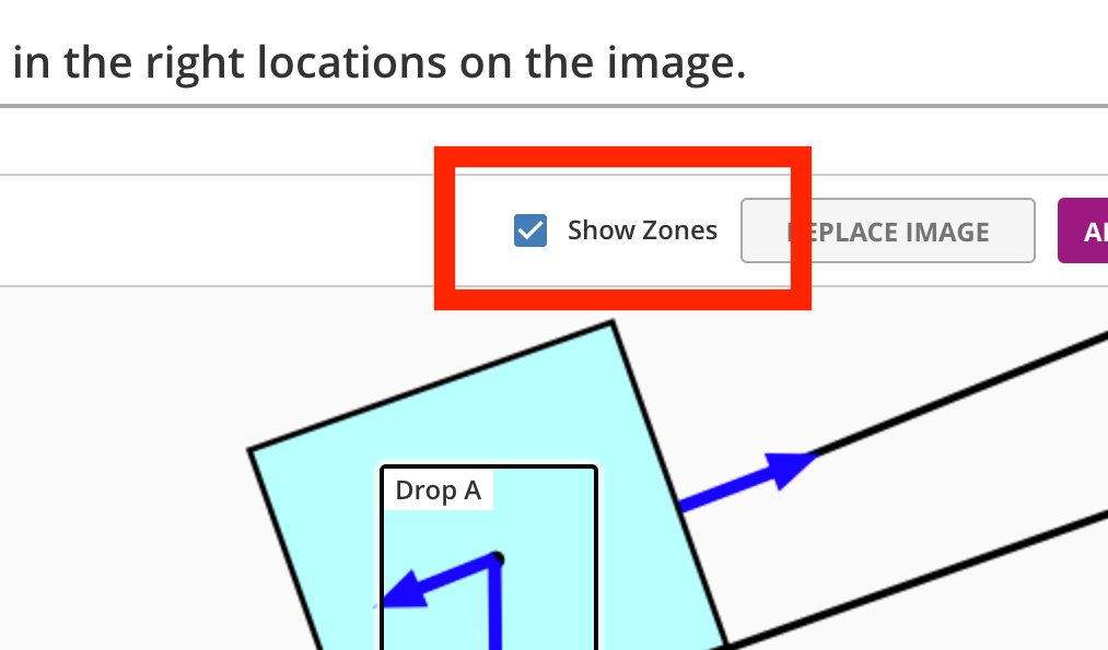 A check box is provided to either show or hide the zones for the student. Hiding the zones can make the question more challenging.