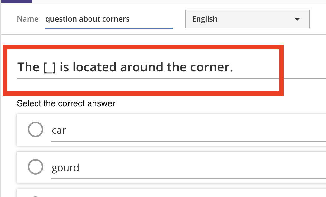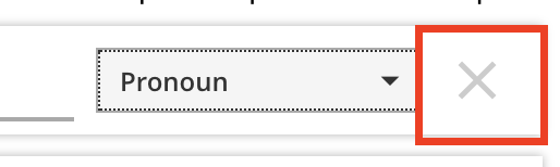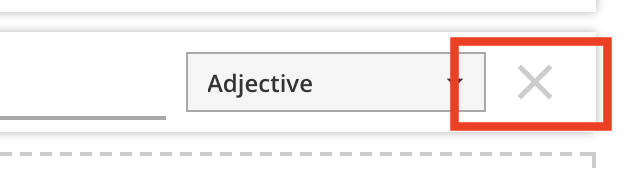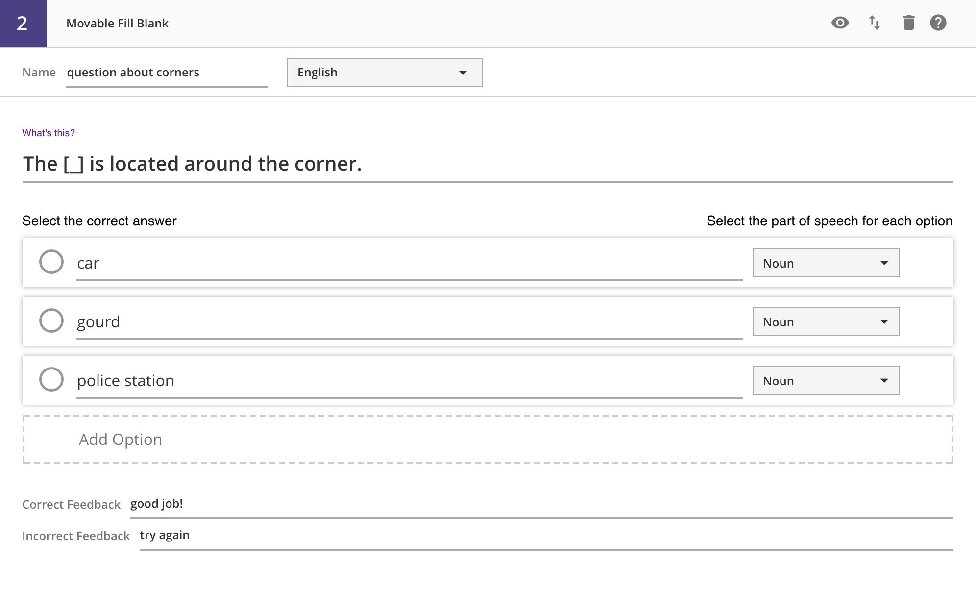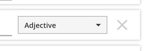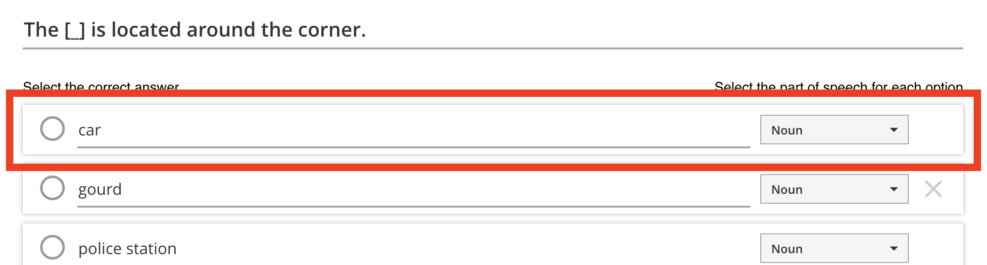 Each option has several controls inside. The radio button on the left indicates the correct option (more in the next section), and the dropdown menu on the right lets you select a word type for this option.