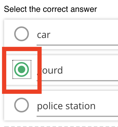 To indicate which of the word choices is the correct one, you need to select the radio button in that option. Doing so will turn it solid green.