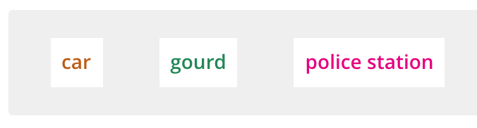 Each word type shows up as a different color when the question is rendered for the student.