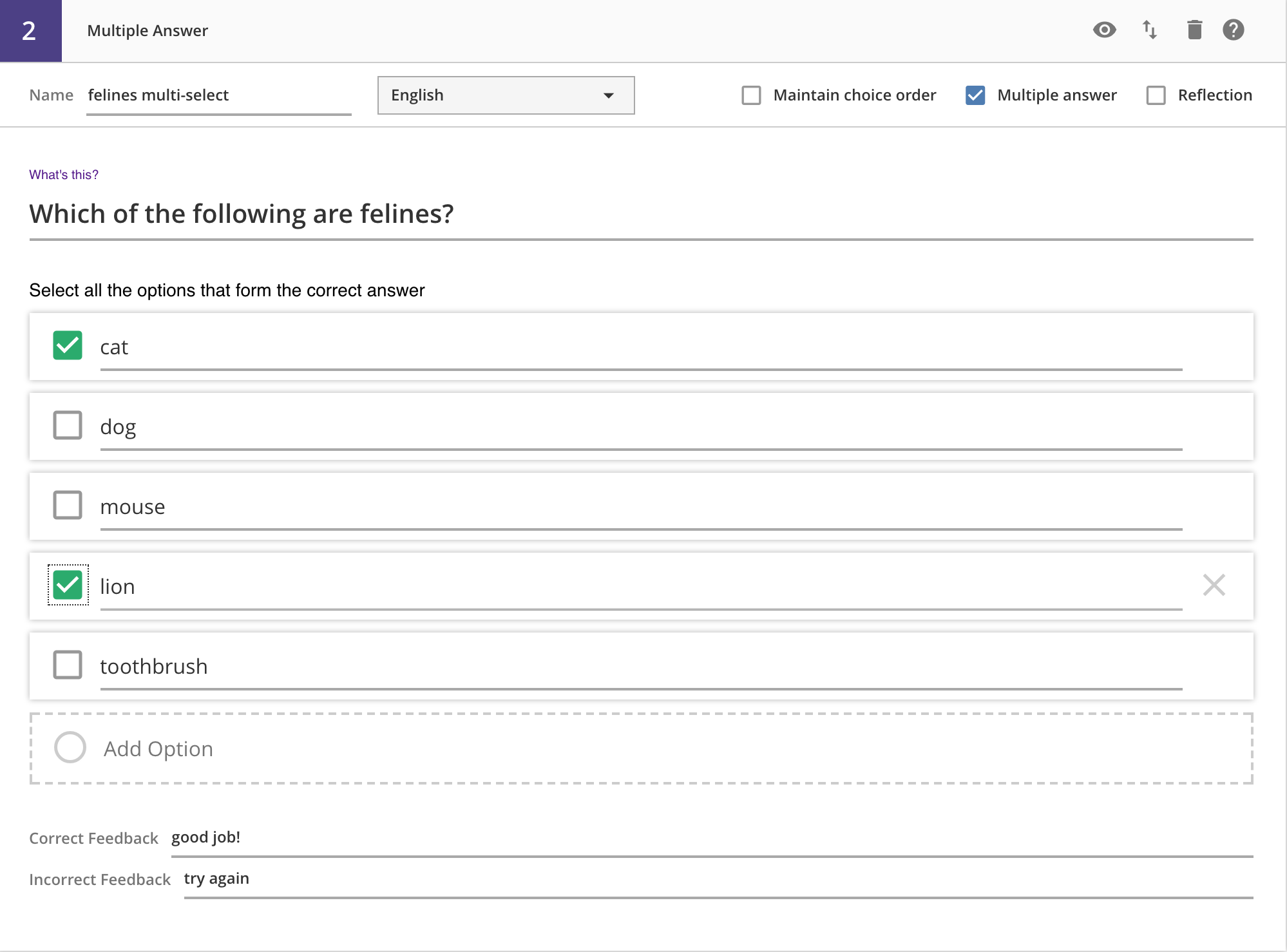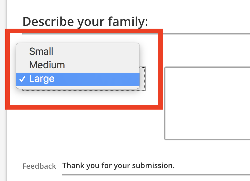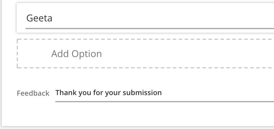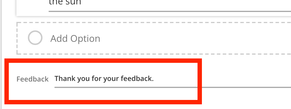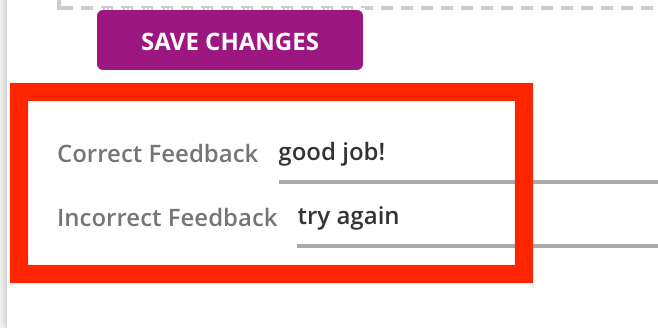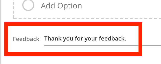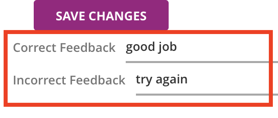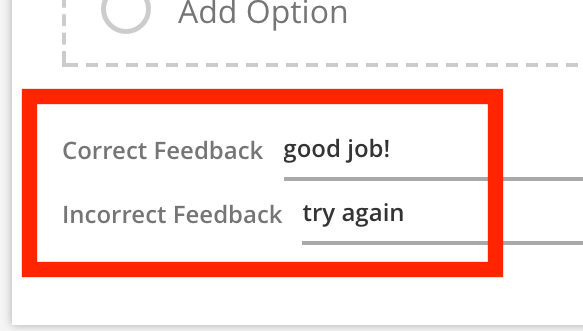Two feedback fields are provided for you, one for the correct answer feedback, and the other for all incorrect responses.