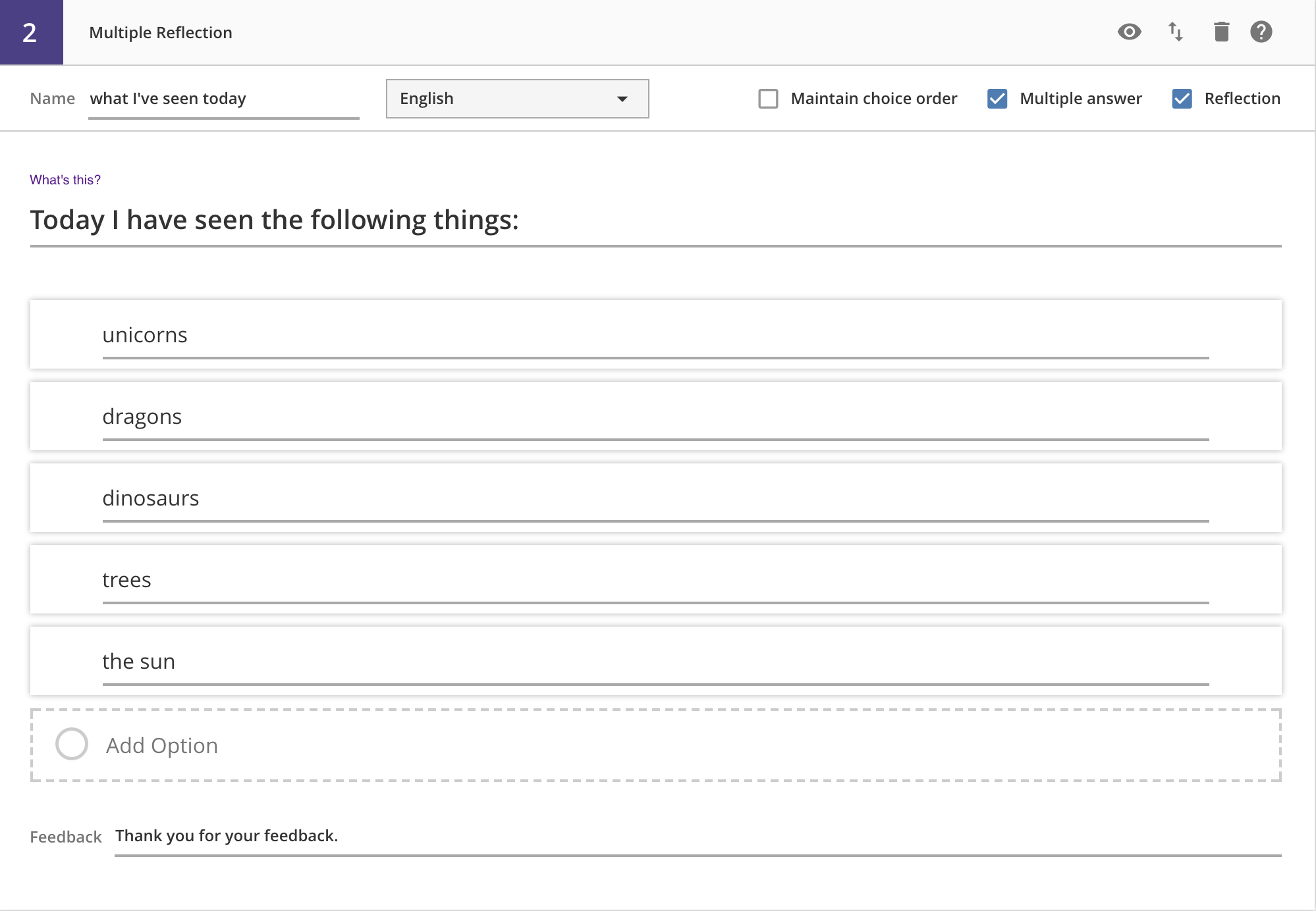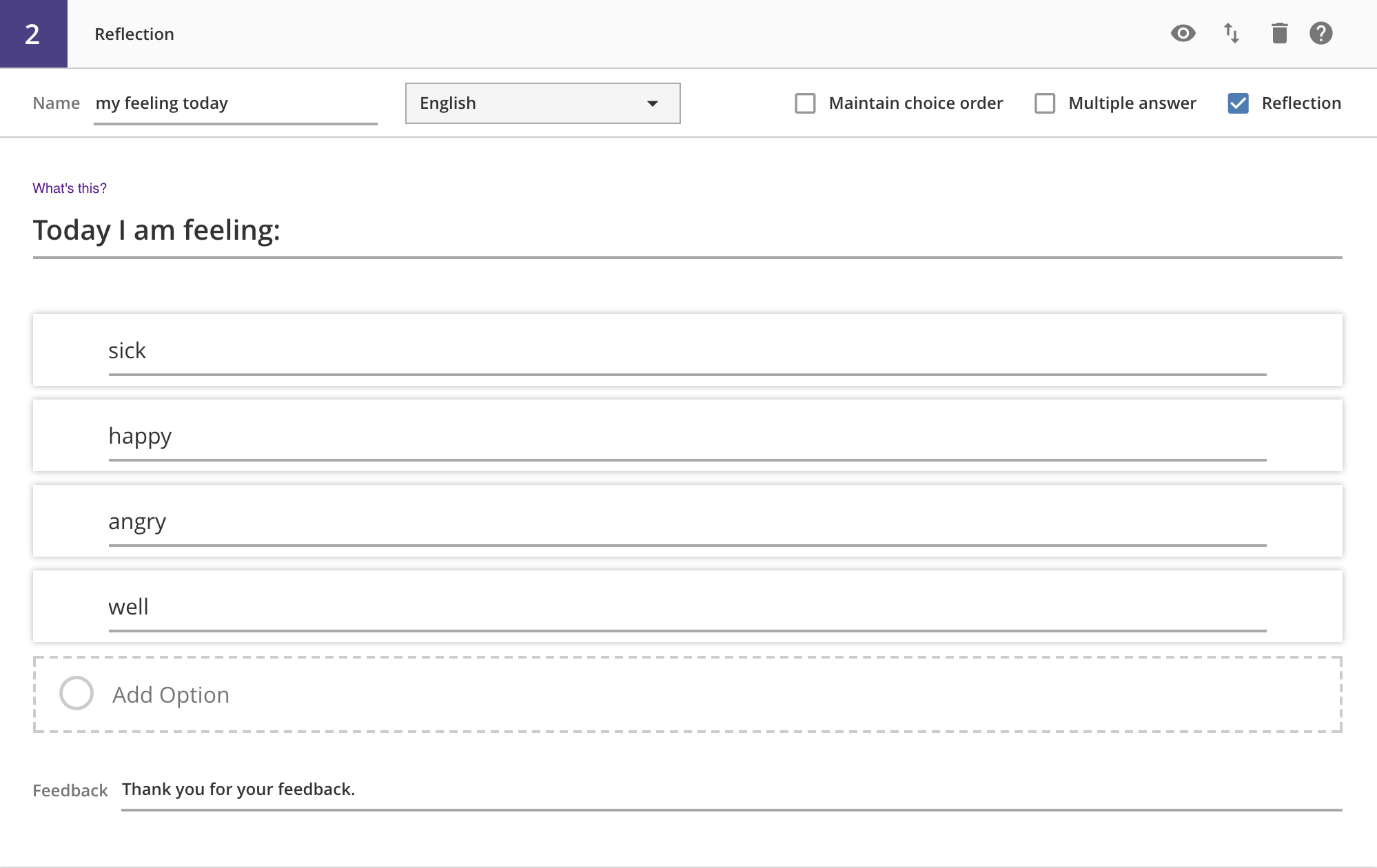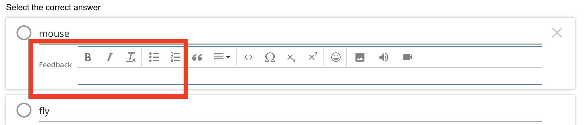 For these questions, each choice has its own feedback field.