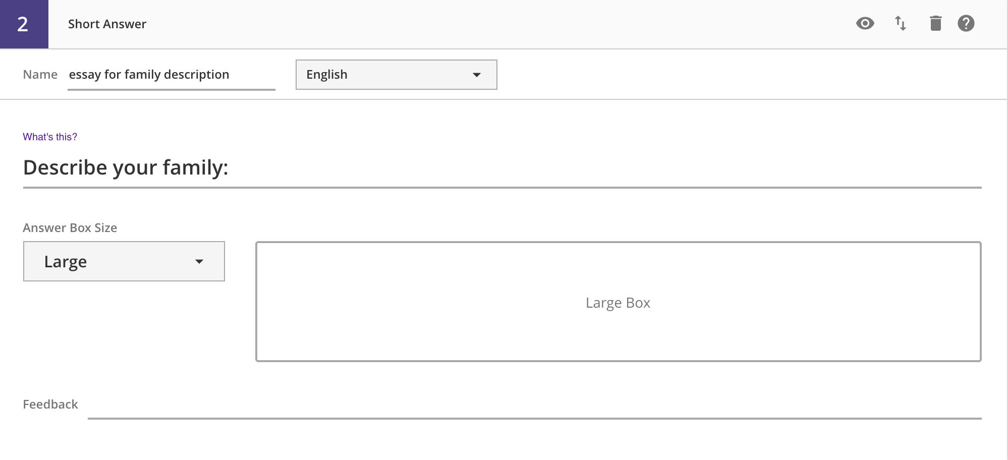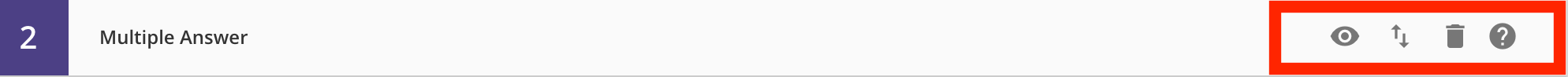 On the top-right of each question, you'll see four icons for preview, move, delete, and help:
