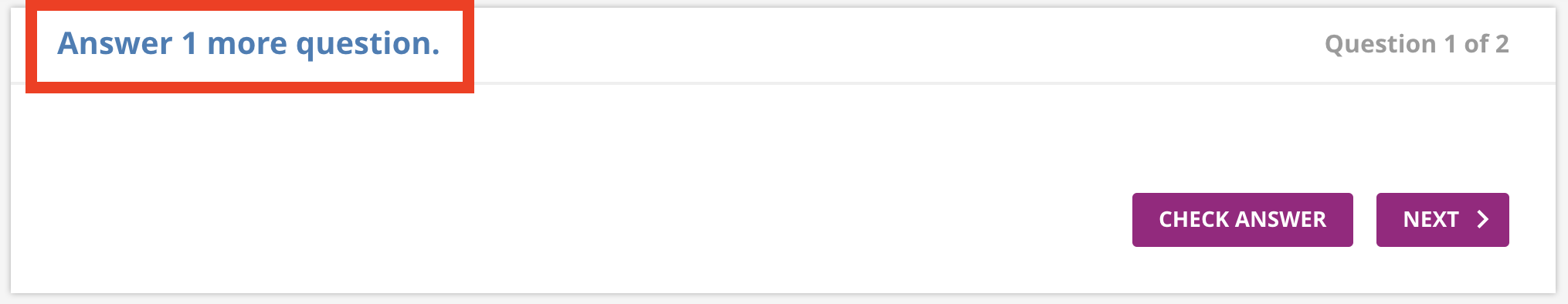 Students will see an N of M heading that indicates how many questions they need to answer, and how many they have already completed.