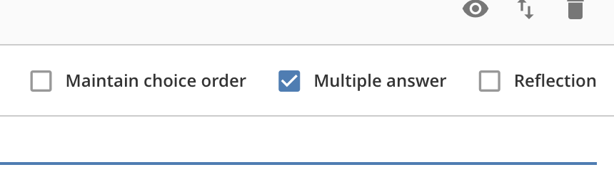 This checkbox is a shortcut for changing the question type between Multiple Choice and Multiple Choice -- Multiple Select (or Multiple Choice -- Reflection and Multiple Choice -- Multiple Select & Reflection). The single select question shows radio buttons next to each choice, and students can only select one of the given choices.