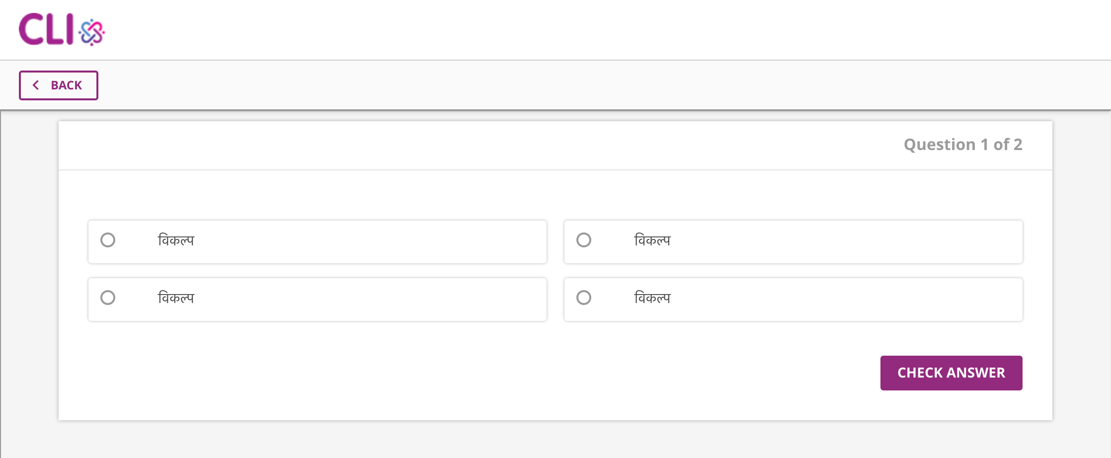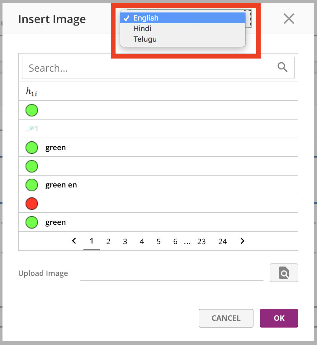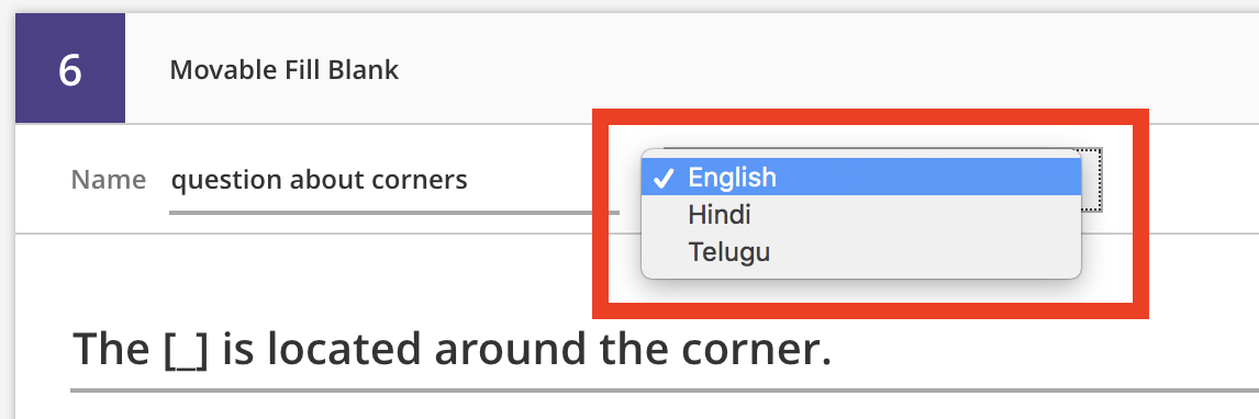 For all the text in a question, we support three languages: English (default), Hindi, and Telugu. Selecting a different language in this menu causes all the language fields for the question to "reset", allowing authors to input translations for each text field.