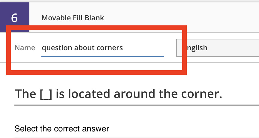 This field is used to help identify the question. Currently it is not shown anywhere other than when editing the question, but should be populated with a name that will help you easily identify the question (i.e. Forces on a ball rolling down ramp would be better than Question 1). Future iterations of this tool may allow authors to search the question bank, and this name will be helpful in finding the question.