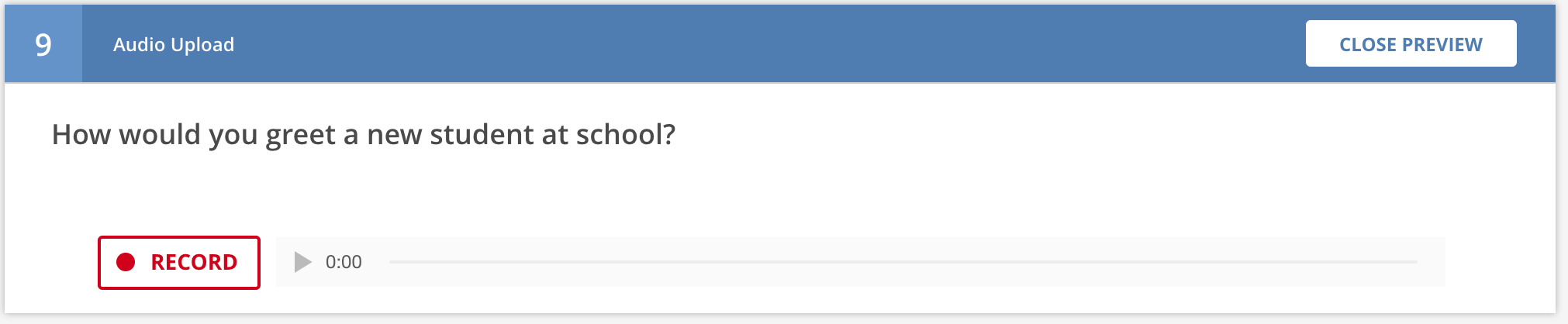 You will use this question when you want students to record their voices and submit a recording. Students can record and playback the audio as many times as they wish before submitting the final recording to the server. There is no way to "recover" previously recorded audio -- each recording over-writes previous recordings.
