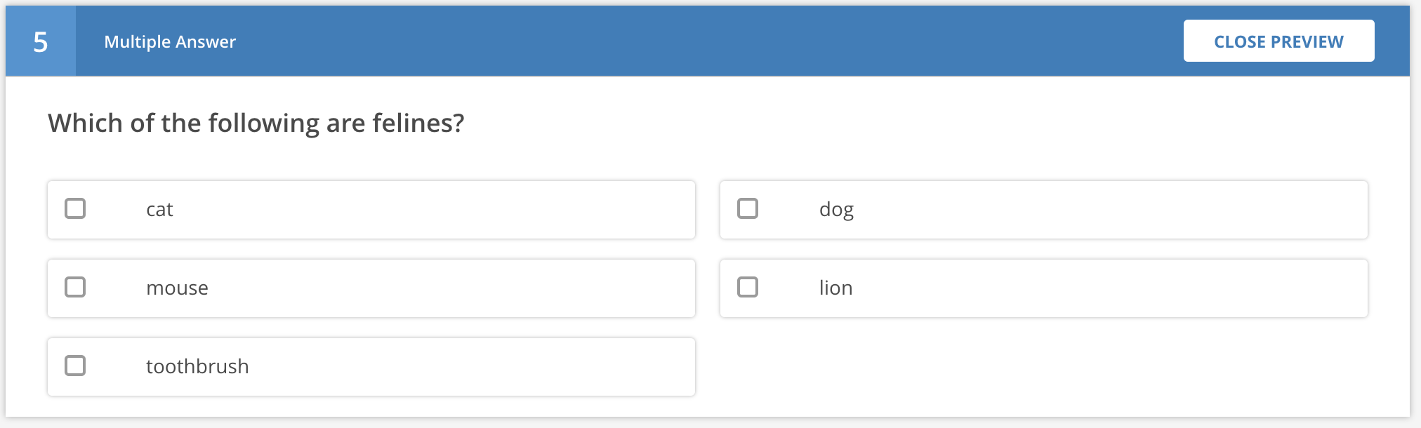 This question type presents a set of choices to the student, and they have to select one or more as the correct answer.