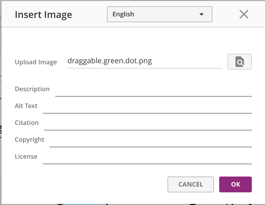 When uploading images, audio, or video, you should also include all of the metadata fields, like alt-text, descriptions, transcript files, and caption files, so the media is accessible for all your students.