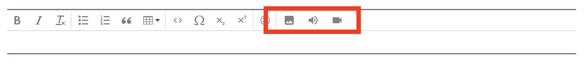 All text fields that use this editor allow you to upload image / audio / video media: