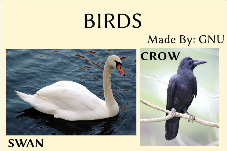 The images which will be used for creating the chart are of the objects which have specific names like in below examples we have a picture of Swan and a Crow.