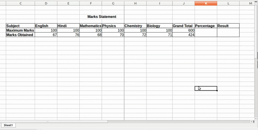 Firstly we will go to cell "K6" where we want our grand total to be displayed