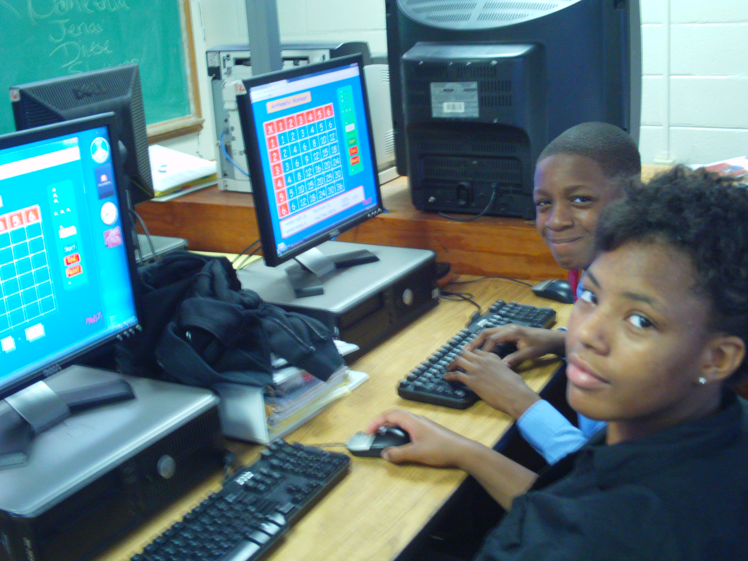 Kids participating in a timed Math review contest at Holy Family Cristo Rey